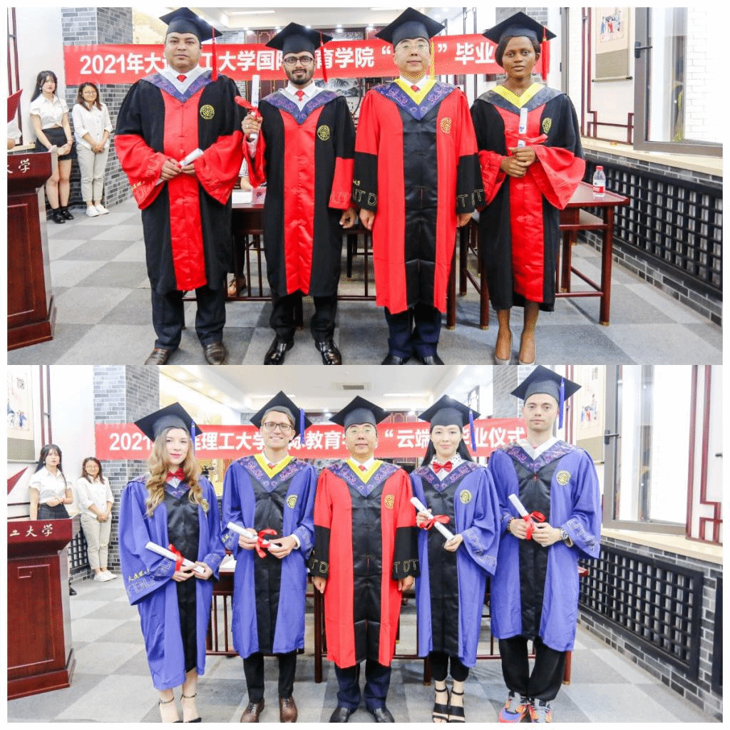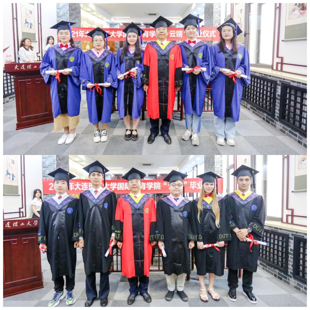 6月22日下午,大连理工大学国际教育学院2021届中外学生毕业学位授予仪式在学院智慧教室隆重举行。学院党政领导及师生代表参与了这场线上线下同步开展的“云端”毕业仪式,部分校外及境外毕业国际学生及国际校友通过云端视频的方式共同见证了这一庄严美好的时刻。