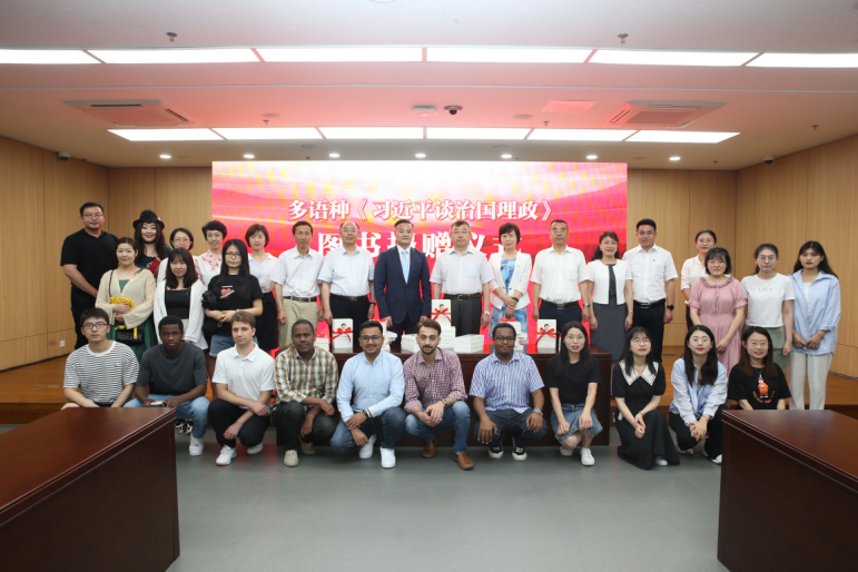 7月8日下午,多语种《习近平谈治国理政》图书捐赠仪式在我校图书馆多功能厅举行。北京崇学文化发展有限公司向我校捐赠《习近平谈治国理政》系列丛书,涵盖英、法、俄、阿、西、葡、德、日等多语种版本,共计290册。校党委书记王寒松代表学校接受捐赠并致辞。国际教育学院院长郝海,副院长衣红连以及国际学生师生代表参加仪式。
