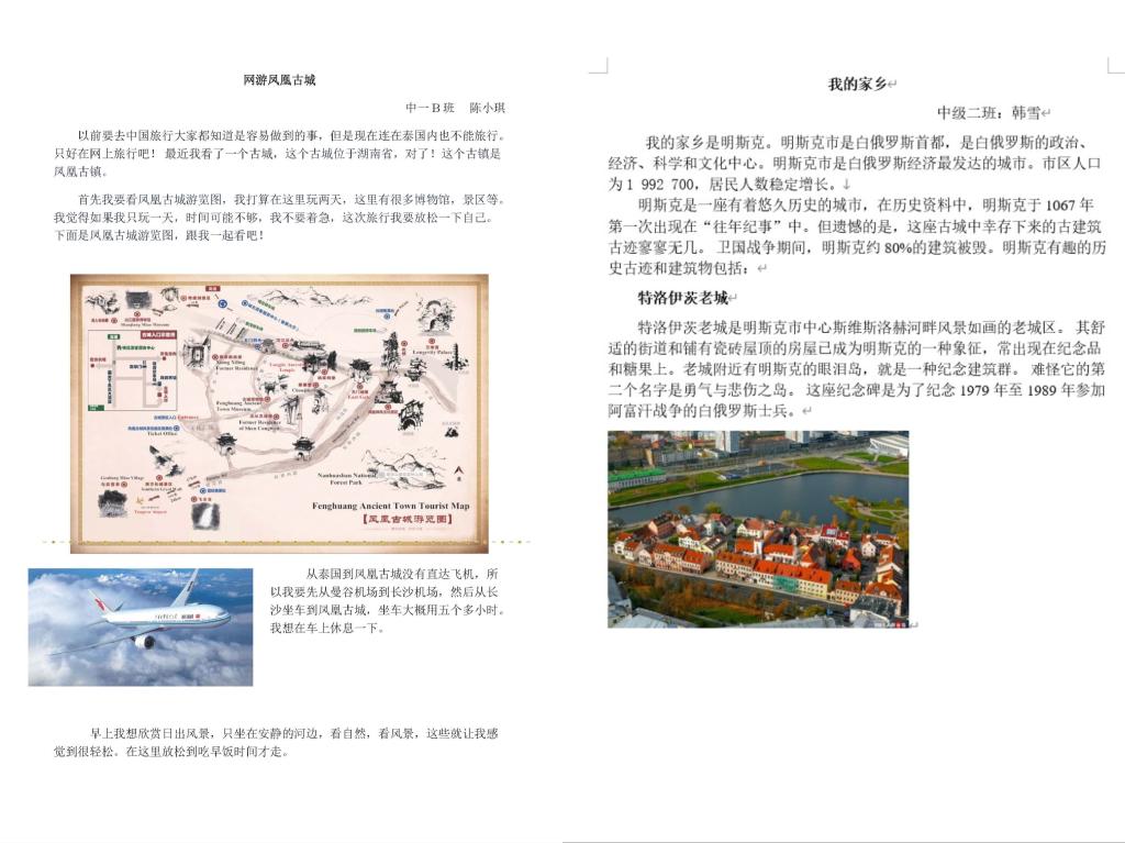 中高年级重在展示学生的书面表达能力,加深学生对中国的了解与认知,抒发中国情怀。中一年级举行了“网游中国”写作活动,学生们通过网络游览想去的中国城市,完成自己的中国之旅,并将所了解的内容形成文字、图片分享给大家。该活动既满足了部分学生因疫情未能成行的中国旅行愿望,也为部分学生下一步的旅行制定了计划,同时也通过此种方式加深了学生对中国城市及城市故事的了解。中二及高级年级组成功举行了“我与中国”“我的家乡”作文比赛,参赛作品中,有的同学表达了对中国这个第二故乡的思念,而没有来过的中国的同学,则选择介绍自己的家乡风貌及特色文化,通过此次比赛,同学们不但了解了同学眼中的中国,同时也通过汉语这个共同的媒介,认识了不同国家的文化。