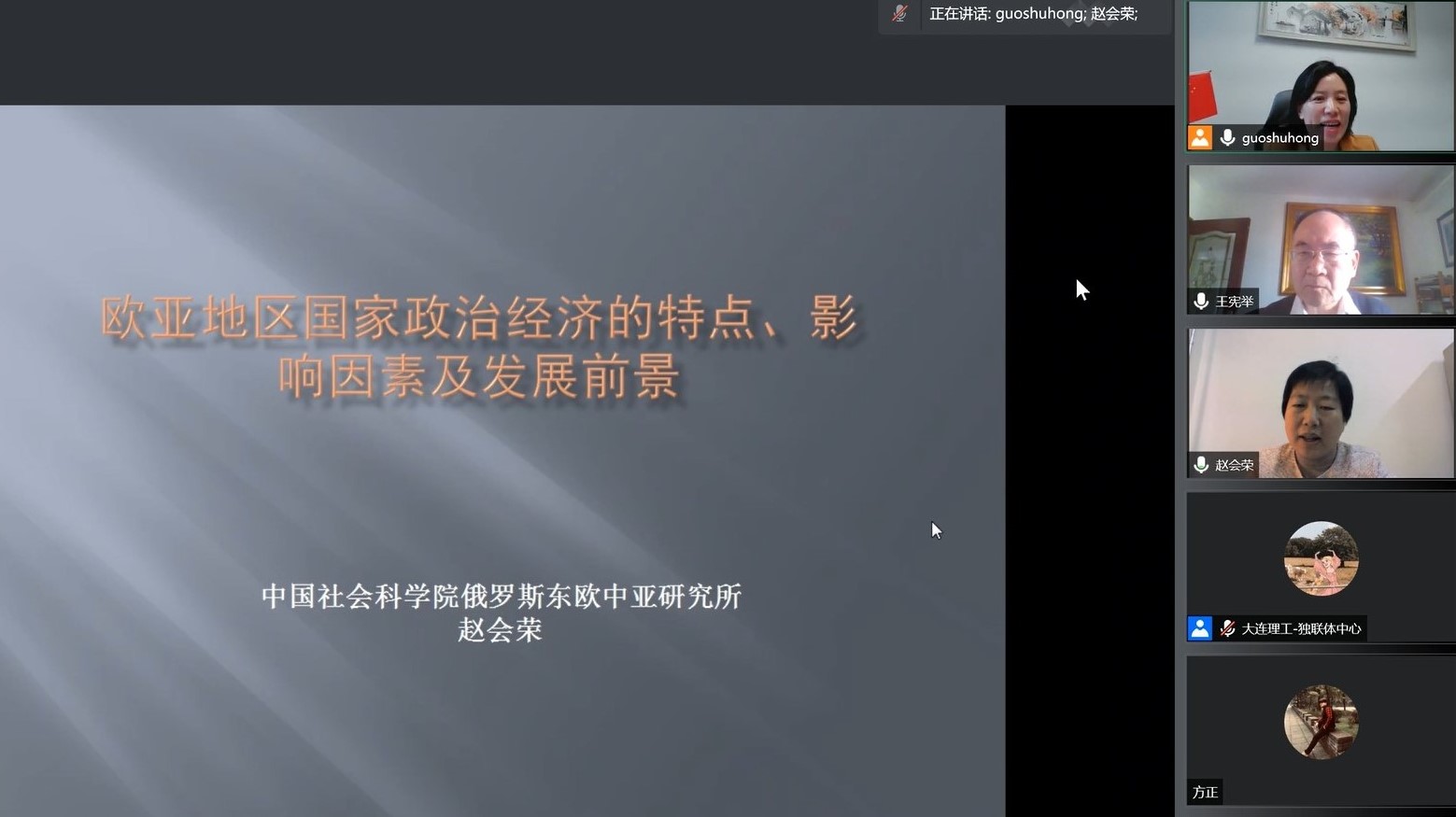 10月26日下午,以“独联体30年经济发展及其与中国的合作关系”为主题的大连理工大学国别和区域研究第五期系列讲座于线上举行。讲座邀请了中国人民大学—圣彼得堡国立大学俄罗斯研究中心副主任王宪举教授、中国社会科学院俄罗斯东欧中亚研究所赵会荣研究员,武汉大学欧洲问题研究中心副主任刁莉教授。独联体国家研究中心常务副主任郭淑红教授主持会议。共有40余位老师同学参加。