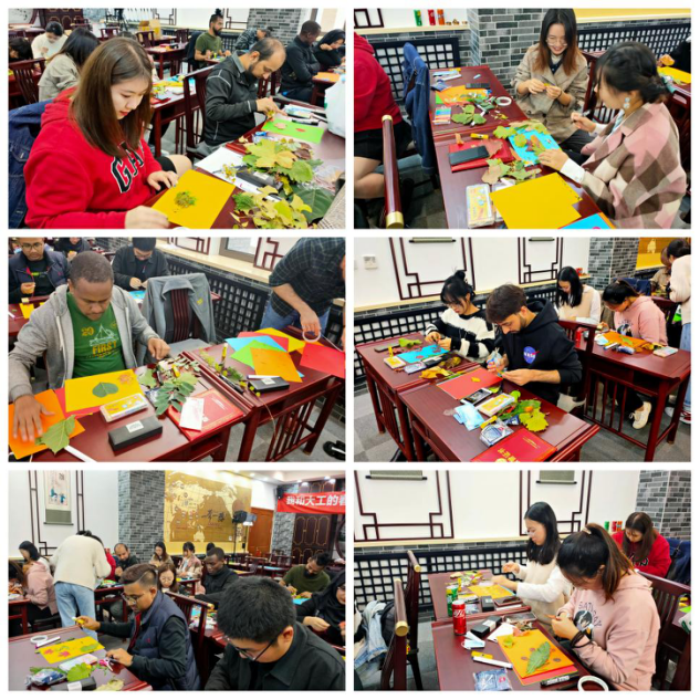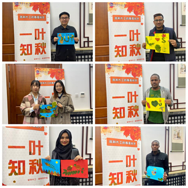 为促进中外青年文明互鉴与交流,丰富国际学生校园文化生活,培养发现美、感受美、创造美的能力,2021年10月24日,大连理工大学国际教育学院在智慧教室开展了以“我和大工的春夏秋冬——一叶知秋”为主题的创意树叶贴画校园文化体验。来自中国、巴基斯坦、尼泊尔、苏丹、孟加拉、日本、马拉维18个国家的35名学生线上线下同步参加了本次活动。