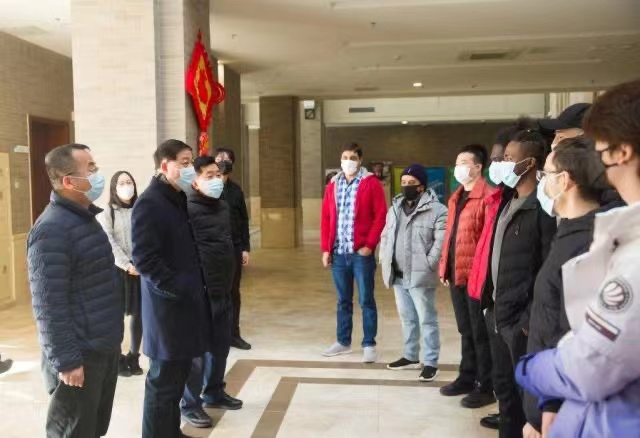 为进一步加强学校疫情防控工作,校园自10日起严格封闭管理,全校教学活动均调整为线上方式开展。11日,校党委书记项昌乐,党委副书记、副校长宋丹,校长助理罗钟铉,校办主任张言军,后勤处处长韩轶等前往国际教育学院走访慰问了在校国际学生。国际教育学院院长郝海、学办主任王月丹及综合办牛彦博陪同参加。