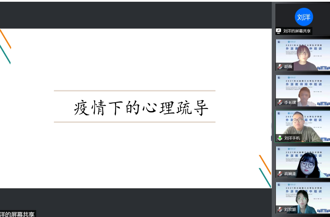 此外,针对当前国外复杂严峻的疫情形势,岗中培训还安排了《疫情下的心理疏导》讲座。主讲医生刘洋详细介绍了在疫情背景下,外派教师应如何关注自身心理健康状况,与老师们分享缓解心理压力的方法。