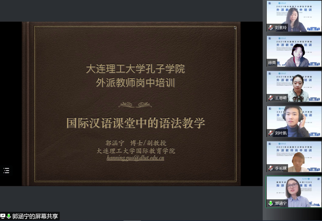 国际教育学院院长郝海首先致辞。郝院长向疫情期间坚守海外教学岗位的教师们表示敬意,向指导本次培训的教育部中外语言合作交流中心表示感谢。他指出,举办此次岗中培训的目的为了给教师们提供相互交流学习的平台,使外派教师能够从资深教师的身上汲取更多经验与灵感,从而更好地胜任孔院的中文教学工作。郝院长还提醒教师们做好疫情防护工作,关注个人健康,以积极乐观的心态完成任期内的各项任务。