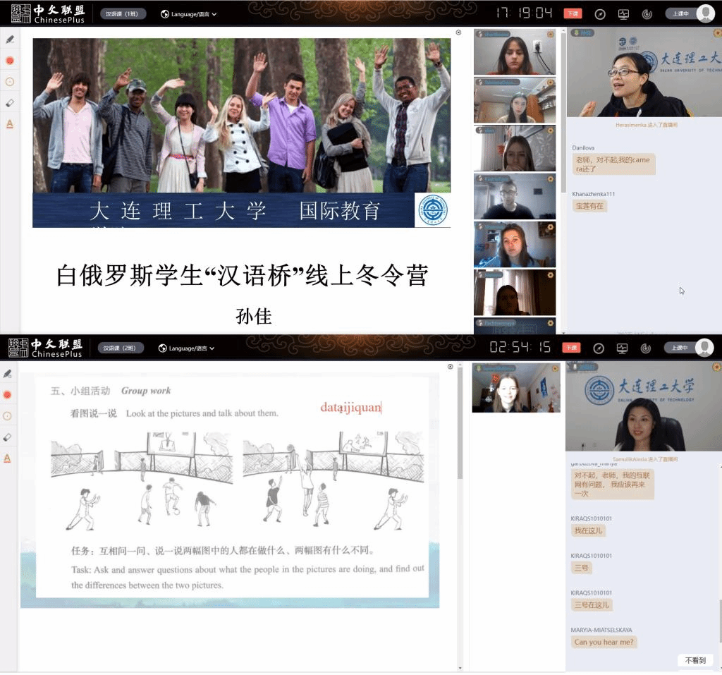 此次冬令营是大连理工大学继2020年白俄罗斯学生“汉语桥”线上冬令营项目后,再次获批的“汉语桥”线上团组交流项目。为了在常态化疫情防控形势下做好冬令营工作,国际教育学院多次召开项目推进会,制定推进方案,结合以往承接项目的经验,整合优质教育资源,集合国际中文教育专业的优秀教师,灵活采用“直播授课+线上互动+视频体验”的方式,为白俄罗斯学员开设了汉语课、一对一交流课、中国传统文化课和留学生在大连的生活四类课程。