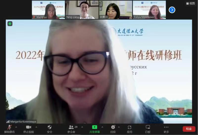 7月29日,由教育部中外语言交流合作中心主办,大连理工大学承办的“2022年白俄罗斯本土中文教师在线研修班(第二期)”举行线上结业仪式。我校国际教育学院院长段玉平、白俄罗斯国立大学共和国汉学孔子学院中方院长刘素玲、汉语教研室主任尤莉亚·马拉特科娃出席结业仪式。仪式由国际教育学院孔子学院管理办公室副主任杨亮主持,25位白俄罗斯本土中文教师在线参加仪式。