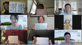 毕业典礼接近尾声之际,CLS项目的同学们同时在镜头中展示出了他们精心准备的小礼物——一张张亲手绘制的写有“谢谢”的卡片,再一次向全体老师和口语助教表示感谢,毕业典礼在全体师生互道珍重的告别声中拉上了帷幕。