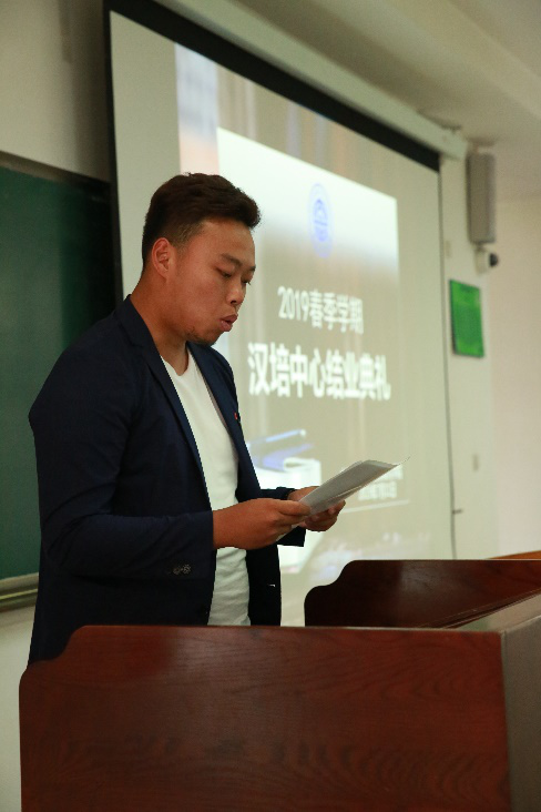 马颖老师作为教师代表发言,临别寄语表达的是对同学们的不舍与祝福,并期待留学生们可以不断地提升自我,成为中国与各国友好交流的使者。