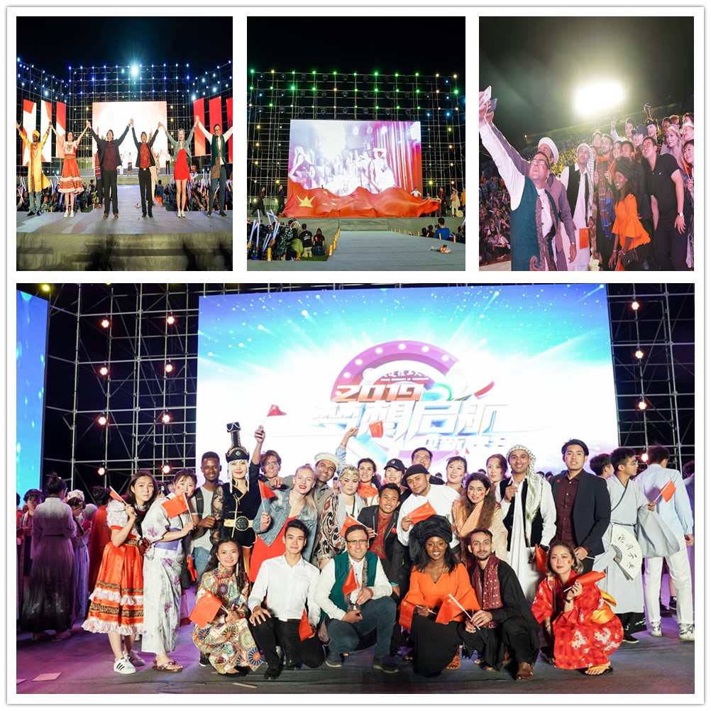 当晚,我院组织来自12个国家的21名优秀国际学生代表经过近1个月的精心排练,登上校迎新晚会的舞台,深情歌唱《红旗飘飘》,引发全场大合唱,台下掌声和欢呼经久不息。