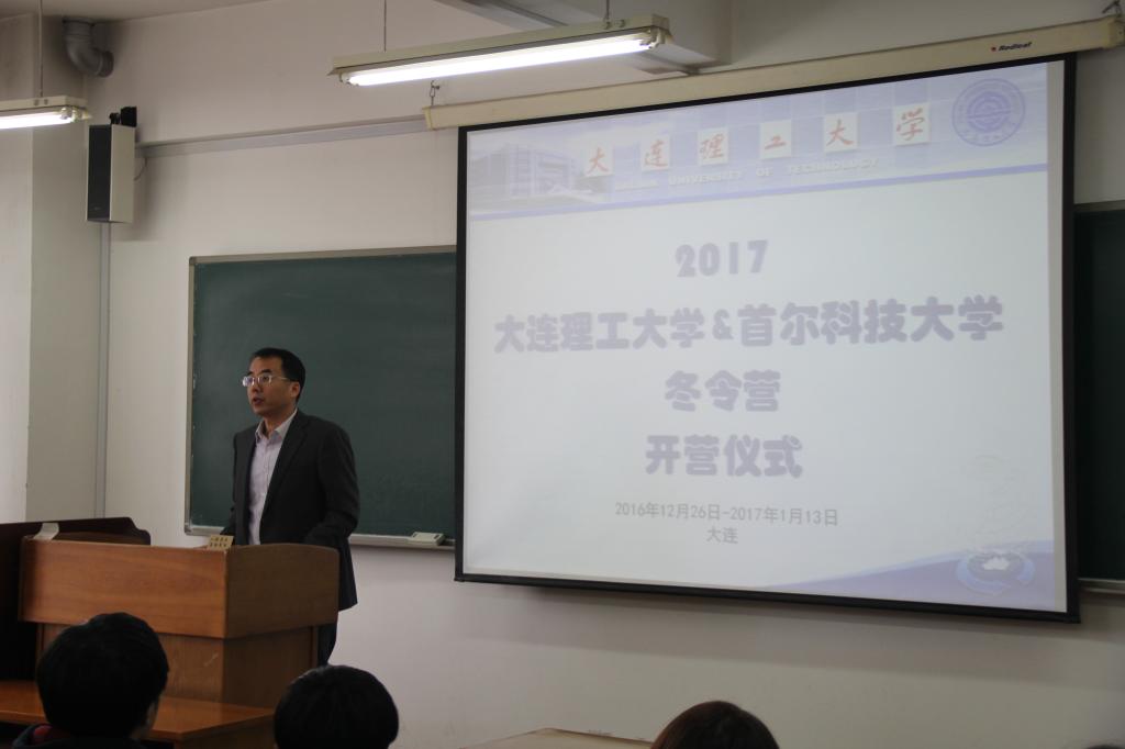 2016年12月26日2:00pm,大连理工大学2017国际学生冬令营在研教楼320室拉开序幕。 参加开营仪式的有来自韩国首尔科技大学的16名学生以及负责本次冬令营教学任务的宋鹏、赵丽君等各位老师。开营仪式上,同学们首先观看了大连理工大学国际学生在大工生活的视频HELLO DUT和第一期首尔科技大学冬令营的视频。
