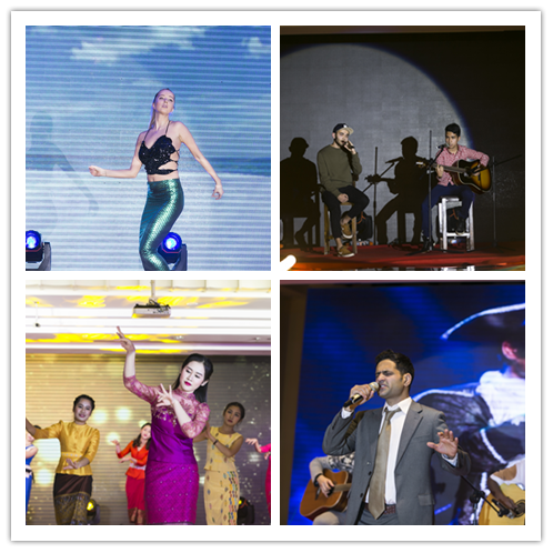 美国小伙儿无极上演了变装歌曲串烧秀,精彩的表演和精湛的唱功赢得全场喝彩;来自日本松本慧月为大家展示了精湛的古筝技艺,婉转的古筝如孱孱流水滋润观众们的心田,而谁又能想到在表演之前她刚刚学习古筝一个月;由来自四国学生组成的“梦中人”乐队,用充满激情的音乐点燃全场观众的热情;由国际学生演绎的太极扇表演,具有浓浓的中国特色,为晚会带来了颇具国际风范的古韵之美;来自中国的志愿者们身着汉服,与国际学生一起用优美的舞姿演绎了礼仪之邦的魅力,把华夏的灿烂文明与翩翩舞步完美结合;国教舞后奥丽雅更是自编自演演绎了一段充满张力与美感的舞蹈,把人鱼公主演的故事用最精妙的方式表达给所有观众。