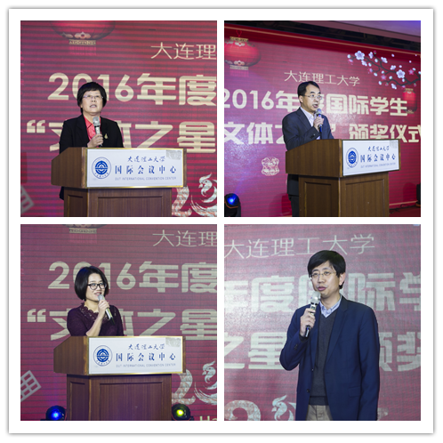 随后进行的是颁奖典礼,以对2016表现杰出的同学进行表彰。颁奖典礼主要包括“文体之星”颁奖、国际学生礼仪队绶带、颁发“阿拉伯国家学生联谊会”会长、副会长聘书、颁发“2016年度优秀来华留学生奖学金”。大连理工大学外国语学院院长、前国际教育学院院长陈宏俊在“文体之星”颁奖后进行了讲话,对大家致以新春祝福并表达了对国际教育学院师生的不舍和美好祝愿。