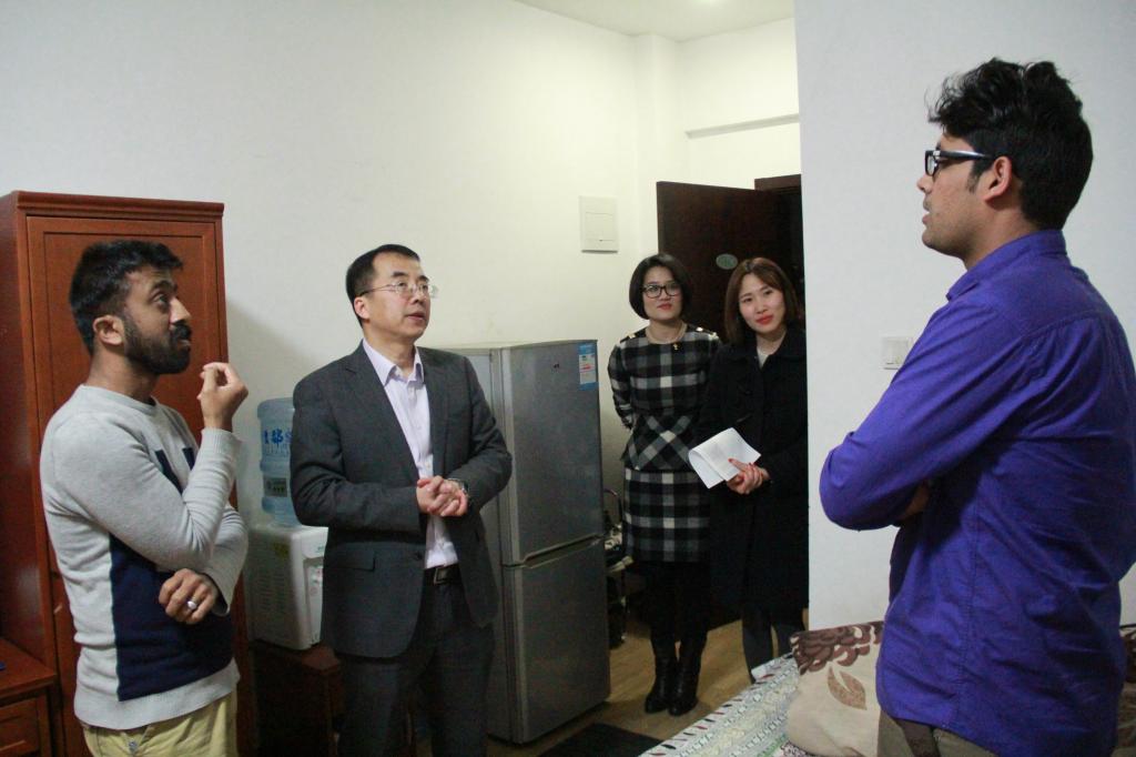走访过程中,学院领导仔细的询问了学生的在校情况、学业进展、留学体验、未来规划等等,受访学生热情的与院长交流,在走访塞尔加尔本科生阿玛杜的过程中,学生向我院对其在过往身体突发疾病中所给与的帮助和支持向院长表达了真诚的谢意,对学院领导的慰问和关切深表感动。在与巴基斯坦研究生哈荣的交流中,相似的工科背景让师生间的对话专业而活泼;在走访韩国语言生梁元溪时,学院领导的韩语和对韩国人文地理方面的了解让让学生倍感亲切,公寓内的气氛一片热烈。