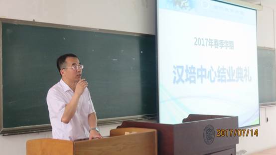 2017年7月14号下午两点,大连理工大学国际教育学院汉语培训中心2017年春季学期结业典礼在研教楼102教室举行。国际教育学院院长郝海教授、汉培中心各年级组长以及各位任课教师出席了本次结业典礼。典礼由汉培中心主任宋鹏老师主持。