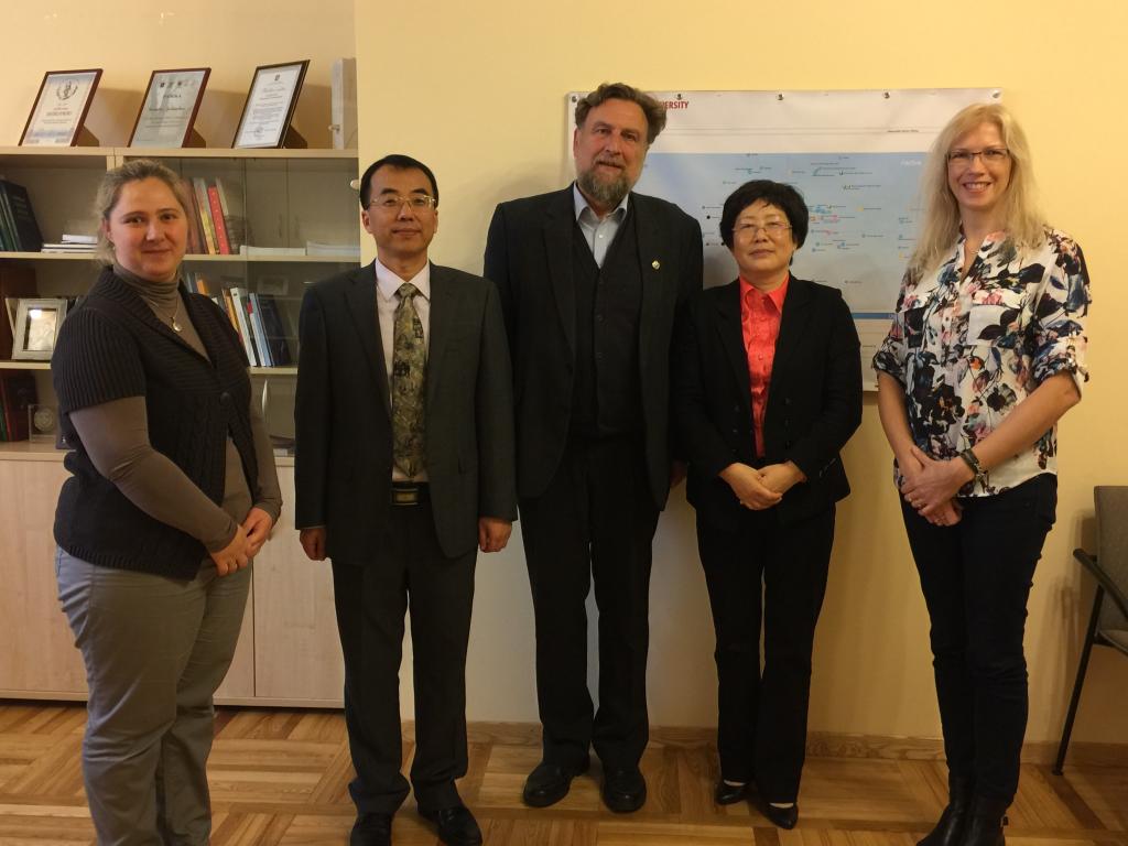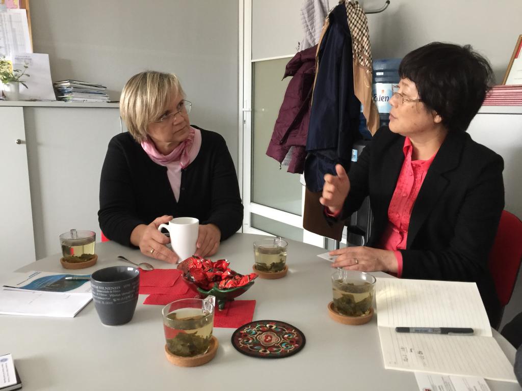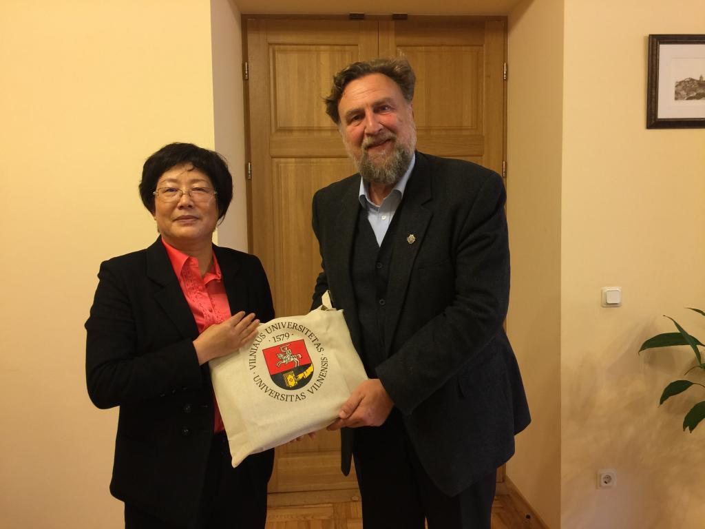10月31日上午宁桂玲副校长会见了维尔纽斯大学科研副校长Rimantas Jankauskas教授和国际合作副校长Greta Druteikiene教授,双方就两校的学科设置、科研方向以及学生培养等方面深入交换了意见,一致同意将充分发挥两校的学科优势,全力支持两校师生开展各种形式的教育科研交流,促使双方互惠互利的合作落到实处。会见前宁桂玲副校长一行访问了维尔纽斯大学东方研究中心,东方研究中心主任兼欧洲中国哲学学会主席Vytis Silius博士详细介绍了该中心的基本情况以及该校汉语教学与中国文化研究方面所取得的成就。宁桂玲副校长欢迎东方研究中心的师生与我校就双方教师间的学术交流与科研合作、学生攻读学位以及各类短期合作项目等开展深入合作。