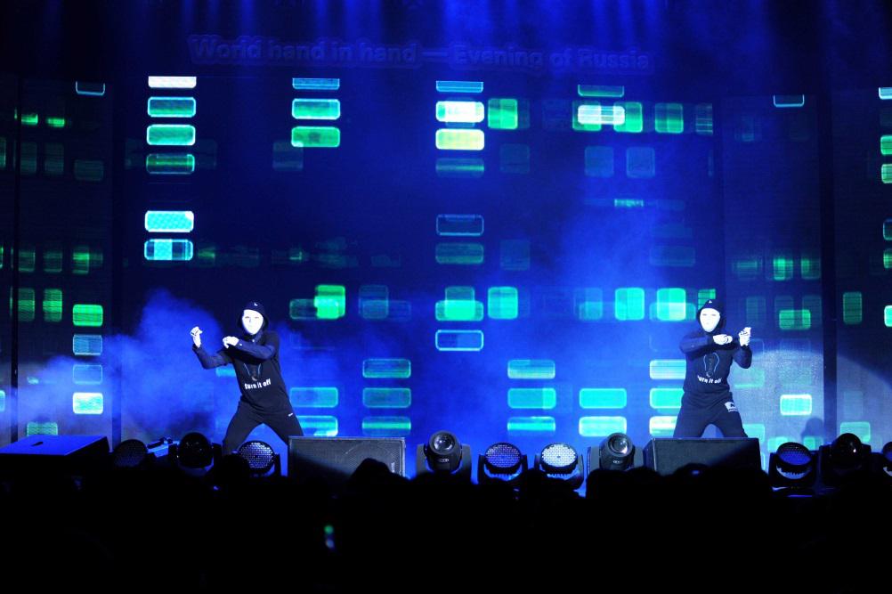 “世界手牵手—俄罗斯之夜”文艺晚会于21日18:30在哈工大一区校礼堂激情上演,作为 “卓越九校联盟” 受邀表演的成员之一,我校俄罗斯籍国际学生玛克西姆与丹尼斯表演的《NONAME》街舞精彩不断,震撼全场,获得了全场观众持续不断的热烈掌声。