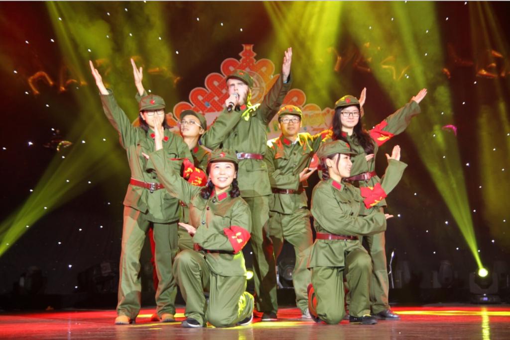 多元文化交织出的中国风也是令人耳目一新。“天上太阳红呀红彤彤,我们心中的太阳就是毛泽东。他领导我们的解放,人民翻身当家做主人。”金发碧眼的波兰小伙康明凯身着中国军装一出场便将现场的氛围点燃;来自巴基斯坦的比拉尔的一曲《风吹麦浪》更是引发了全场观众的大合唱;国际学生舞蹈班的壮族舞《歌飘山水间》也让我们感受到了国际化的壮族风情;来自英国的杜安彬和茉莉用一曲《中国话》成功地征服了现场的观众,一段段流畅的中文绕口令让人为之叹服;大工研究生同学的《扇子舞》向大家传递了理工院校的文艺气息,现代科技与传统舞蹈相融合的《荧光舞》早已不能用酷炫两字来形容;国教志愿者们的集体舞活泼又动感,向我们展示了志愿者群体的青春与活力;俄罗斯女孩罗百灵用她天籁般的嗓音为我们演唱了本次晚会的压轴曲目《玛依拉》,余音绕梁。