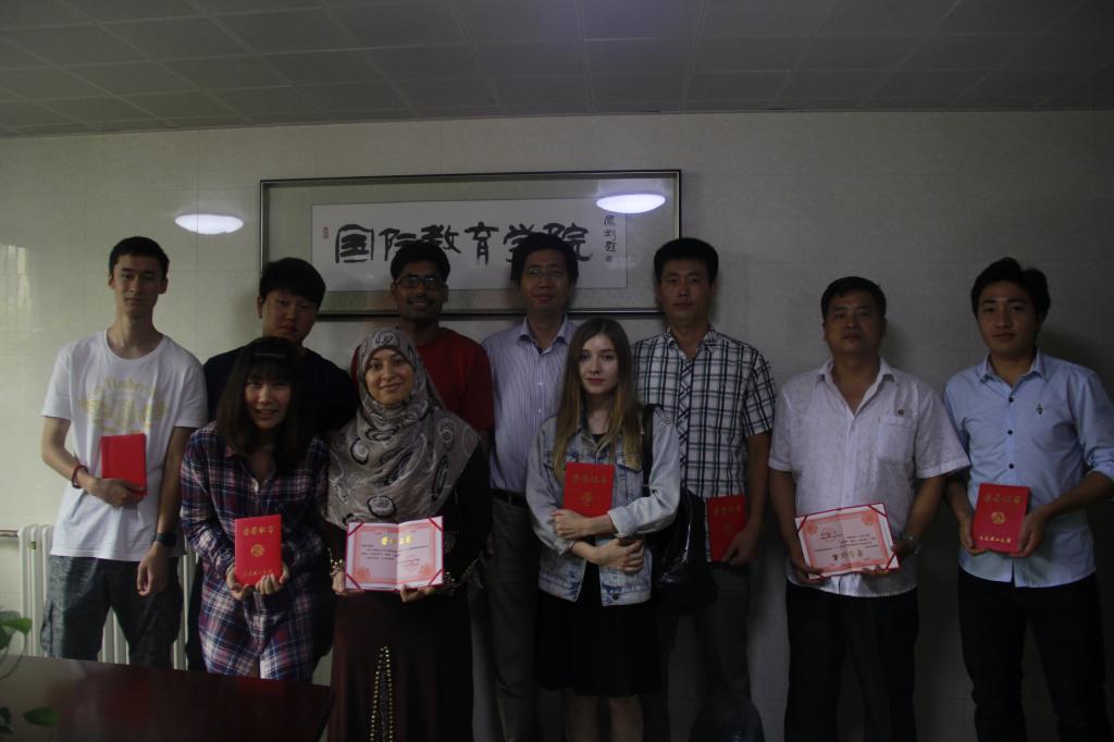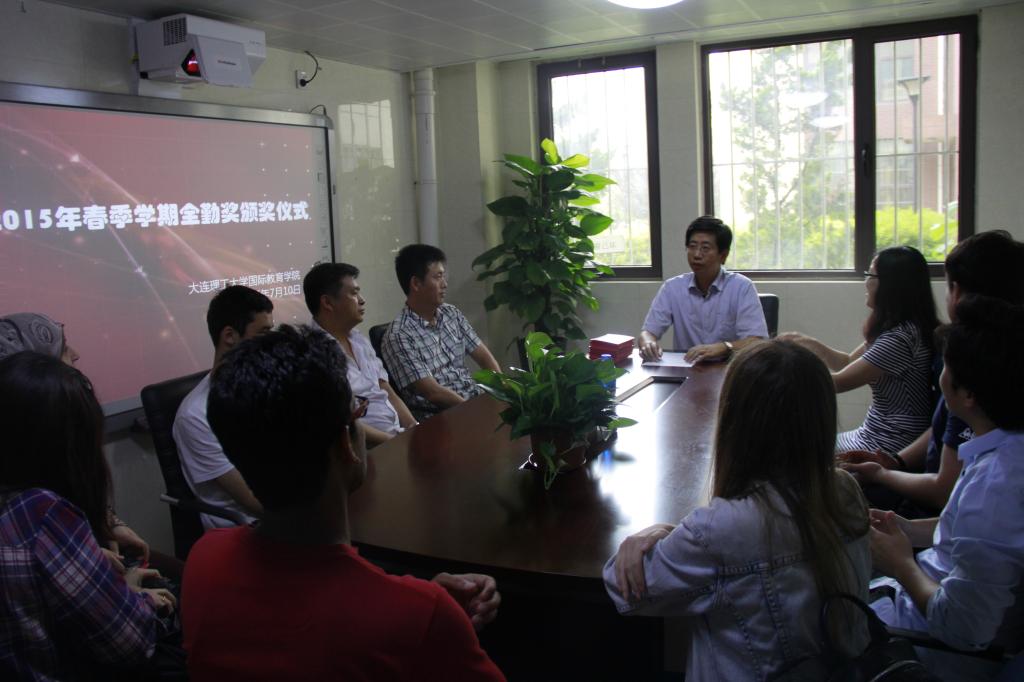 2015年7月11日上午11点,我院在学院办公室举行了2015年春季学期汉语培训中心全勤奖颁奖仪式,陈宏俊院长及获得全勤奖的各位同学参加了此次颁奖仪式。