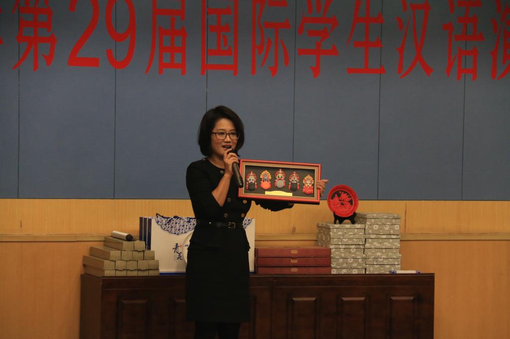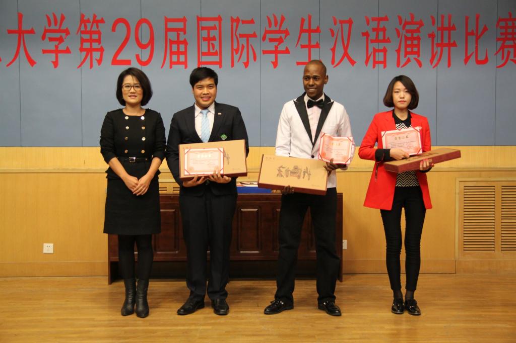 经过三个小时的激烈角逐,比赛最终评出一等奖3名,二等奖6名,三等奖9名,优秀奖14名。来自朝鲜的朴香美、南非的林志、泰国的包翰霖分别获得初中高组的一等奖,来自韩国的吴娜来、波兰的康明凯、白俄罗斯的佳娜等6名选手获得二等奖,来自俄罗斯的茵娜、越南的陈辉国、日本的松本龙太郎等9名选手获得三等奖。国教学院副院长郭晓郁及各位老师对获奖选手进行颁奖。