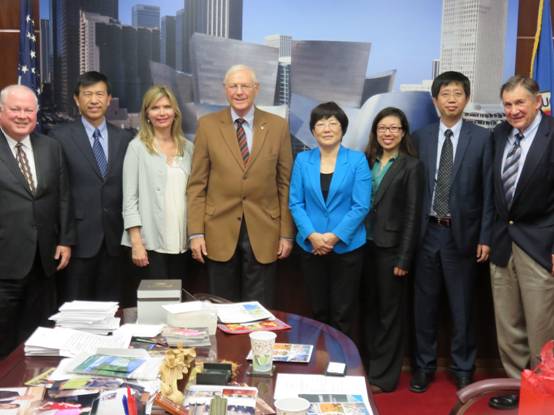 11月19日下午,宁桂玲一行来到位于洛杉矶市的大洛杉矶郡政府,拜会了该郡郡长麦克·安东诺维奇。宁桂玲介绍了我校的情况以及此次访问的目的,安东诺维奇表示有浓厚的中国情结,该郡愿意为两校的合作提供可能的支持。