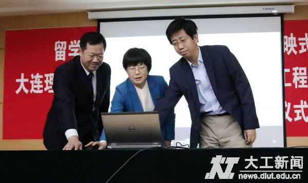 副校长宁桂玲、宣传部常务副部长周福战、国际教育学院院长陈宏俊,共同开启“Hello DUT”留学大工宣传片首映。