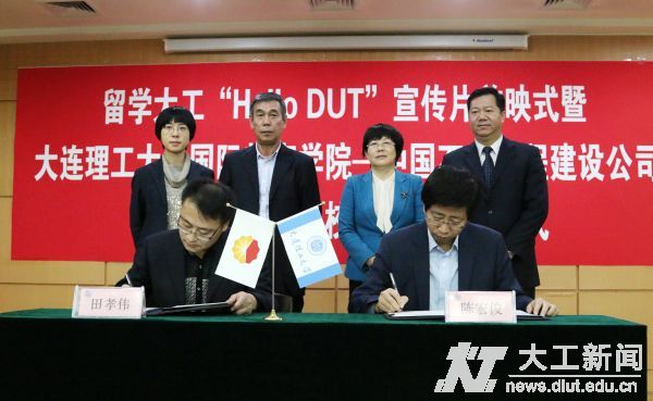 留学大工“Hello DUT”宣传片首映式暨大连理工大学国际教育学院与中国石油工程建设公司大连设计分公司签约仪式在伯川图书馆多功能厅举行。大连理工大学副校长宁桂玲,中国石油工程建设公司大连设计分公司党委书记、副总经理周彦出席签约仪式。学校宣传部常务副部长兼新闻中心主任周福战、国际教育学院院长陈宏俊等相关负责人参加仪式。仪式由国际教育学院副院长郭晓郁主持。