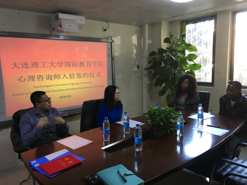 2016年3月24日下午,大连理工大学国际教育学院心理咨询师入驻签约仪式在国际教育学院会议室举行。