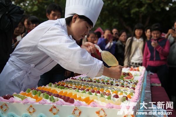 巨型蛋糕在开幕式结束后为游人免费提供,期待一品美味的同学们在分发点前排起了长龙。校领导和嘉宾纷纷拿起刀叉,亲手为同学们切分蛋糕。制作蛋糕的师傅告诉笔者,他们凌晨3点就起来开始忙碌,一直到现在。来自化工与环境生命学部的大一新生潘贵沛同学边享受着蛋糕清香的抹茶味,边兴奋地说:“这个文化节真热闹、真气派、真好玩。”负责此次巨型蛋糕计划的张萌说,相信每一位大工人都不会忘记这一天,这是个有着特殊意义的开篇之日,今后国际文化节会有更加精彩的节目呈献给大家。