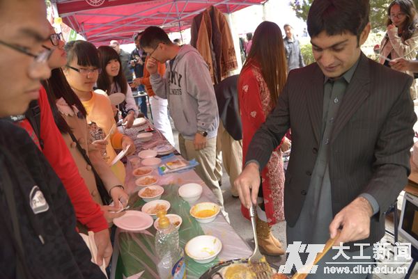 在穆斯林板块,一袭白衣、头戴方巾的沙特留学生向同学们介绍自己摊位前的沙特特产和味道独特的咖啡;伊朗展位可爱的姑娘们为游览者介绍本国制作精良的甜甜的“金黄米饭”;巴基斯坦人则带来了本国以米饭和干果为原料的特色美食,还现场教同学们巴基斯坦话,展示着巴基斯坦的钱币,服装及音乐。一袭白衣的苏丹人为游人推荐着苏丹独有的香熏咖啡。