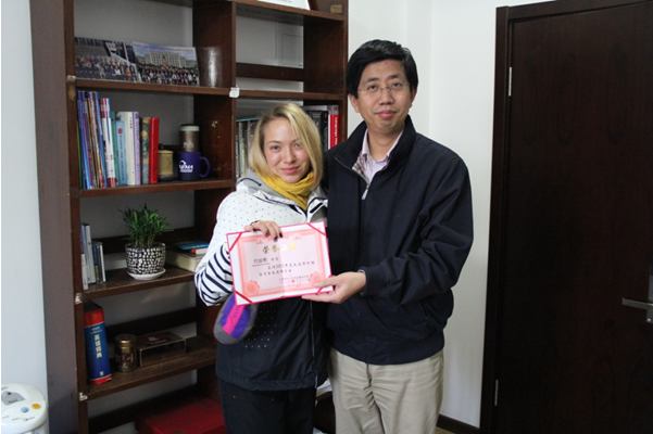 On Nov.27th, 2013, Associate Professor Chen Hong-Jun, Dean of school of international education, issued the certificates and scholarship to six award-winning students.