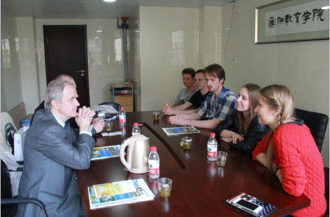 白俄罗斯国立大学副校长DANILCHANKA· ALIAKSEI(阿列克塞·达尼里琴科)以及语言文学系主任--ROUDA·IVAN(罗夫达·伊万)介绍了白俄罗斯国立大学的整体情况,尤其介绍了东方学院的中文系以及国际关系学院等选择汉语为第一外语的学生的学习情况,以及他们在白俄罗斯深受欢迎的现状,并高度赞扬了双方多年的友好合作关系。