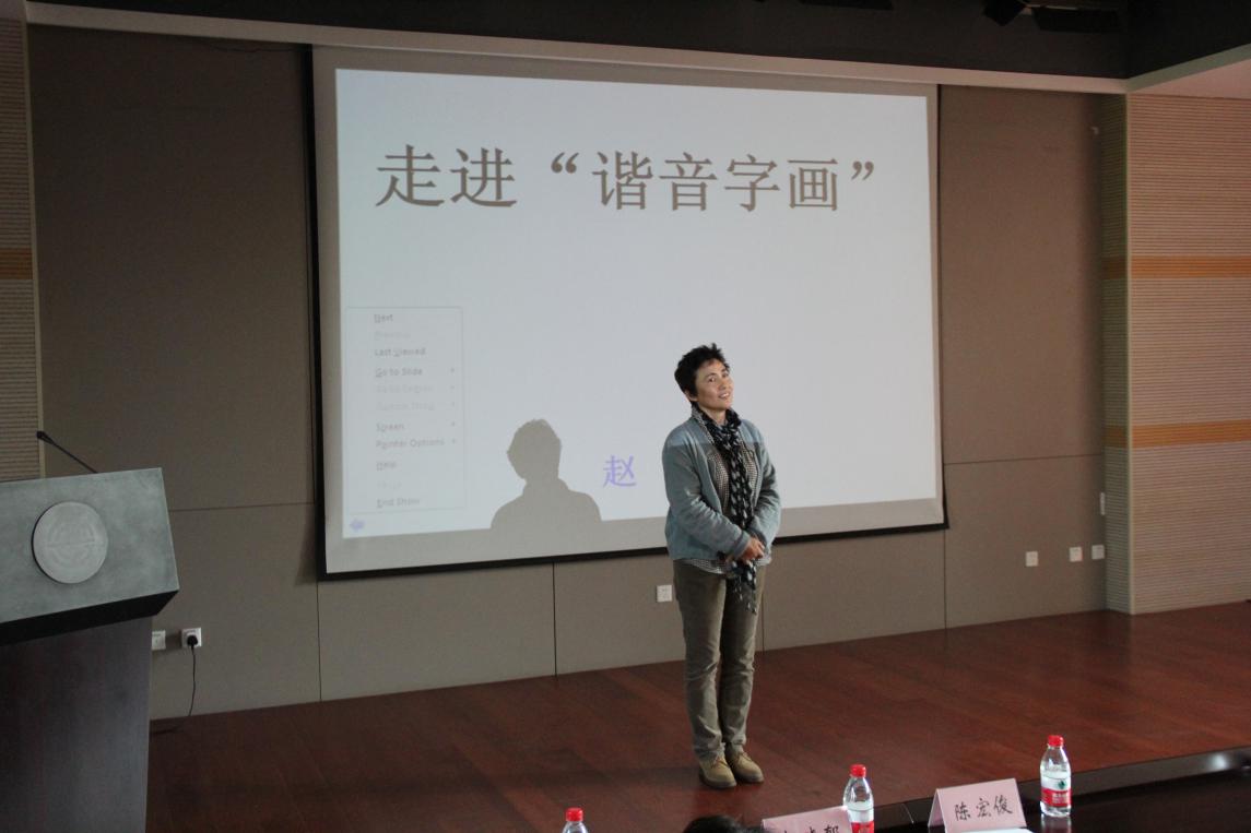 5月12日下午,新加坡南洋理工大学孔子学院资深汉语教师赵华老师做客国际教育学院主办的2014国际教育讲坛,为我院师生带来一场题为“走进‘谐音字画’”的精彩讲座。讲座由院长陈宏俊教授主持,大连市外侨办副主任刘舫、副巡视员刘继强莅临讲座现场,国际教育学院、人文学院近百位师生到场聆听。