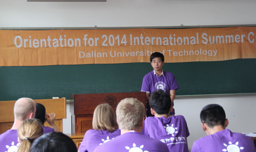 开营仪式由中方学员李晓峰同学主持,同学们先观看了一段关于大工的英文视频,让来自不同国家的学员对我校的基本概况有了一定的了解。国际教育学院院长陈宏俊教授介绍了大工在国内外大学排名情况以及国际教育学院的情况,并代表学校对外方学员的到来表示欢迎。陈院长在发言中说:今年是自2008年以来的第七届国际夏令营(2013年以前称为国际暑期班);每年都会有许多来自不同国家的学生利用暑期来到大工参加国际夏令营,都收获很大。陈院长还介绍了与美国宾州州立大学首次合作的“2014年中国能源与环境政策暑期学分班”(英文简称为CEEE),该学分班的两门专业课“中国经济概论”和“中国能源与环境政策”共6学分,学生经过系统的学习后,拿到的学分将被记入到对方大学的总学分。