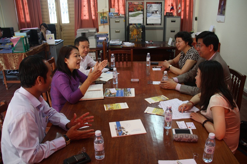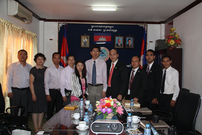 2月18日至20日代表团一行来到柬埔寨访问。访问期间陈宏俊一行首先访问了金边皇家大学,受到了副校长OUM RAVY女士和外事处长TAING YOU 博士的热情接待。陈宏俊院长向对方详细介绍了我校的基本情况、英文授课专业及暑期学校等我校留学生教育的特色项目,在中国政府及学校奖学金的基础上开展学生联合培养等合作。陈宏俊一行还访问了柬埔寨金边建明大学总校区以及暹粒分校区,校长 Diep Seiha、分校区校长SIV Vutthy热情地接待了代表团一行。在柬埔寨暹粒东南亚大学,校长Yim Chanvisal、主管外事副校长、主管科研副校长、外事处处长等与我校代表团进行了近三个小时的会谈,在我校VCR展示,重点招生项目推介后,又根据他们的需要,详细咨询和了解我校招生情况,探讨了在柬合作办学等可能性。