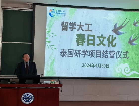 4月30日,国际教育学院“留学大工·春日文化”泰国研学项目结营仪式在海川楼B111举行。国际教育学院院长段玉平教授、副院长衣红连、项目拓展办公室副主任张奕涵及研学项目组老师与六十名泰国籍学员共同参加了此次结营仪式。结营仪式由张奕涵主持。
