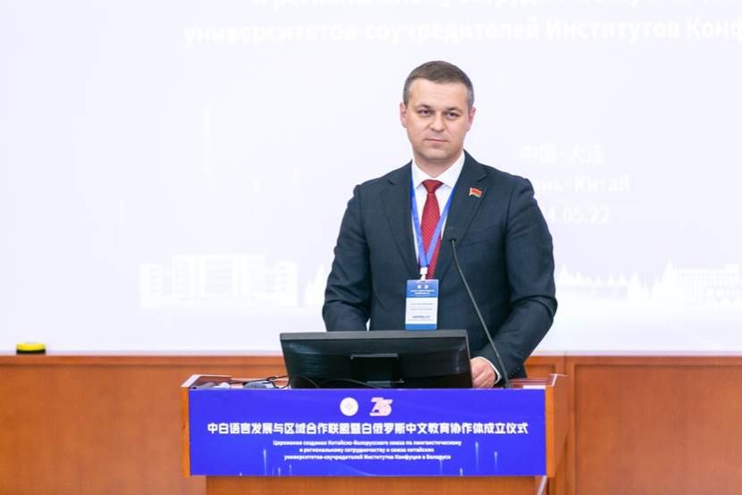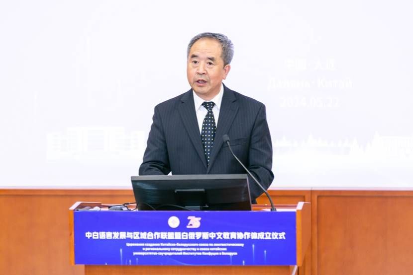 2024年5月22日,中国——白俄罗斯大学联盟中白语言发展与区域合作集群子联盟暨白俄罗斯中文教育协作体成立仪式在大连理工大学隆重举行。中外语言交流合作中心副主任胡志平、大连理工大学校长贾振元、白俄罗斯国立大学副校长科钦·维克多出席并致辞。仪式由大连理工大学国际教育学院院长段玉平主持。来自白俄罗斯国立大学、格罗德诺杨克库帕尔国立大学、戈梅利国立大学、北京外国语大学、东南大学、东北大学、大连外国语大学等中白两国知名高校的60余名代表参加会议。