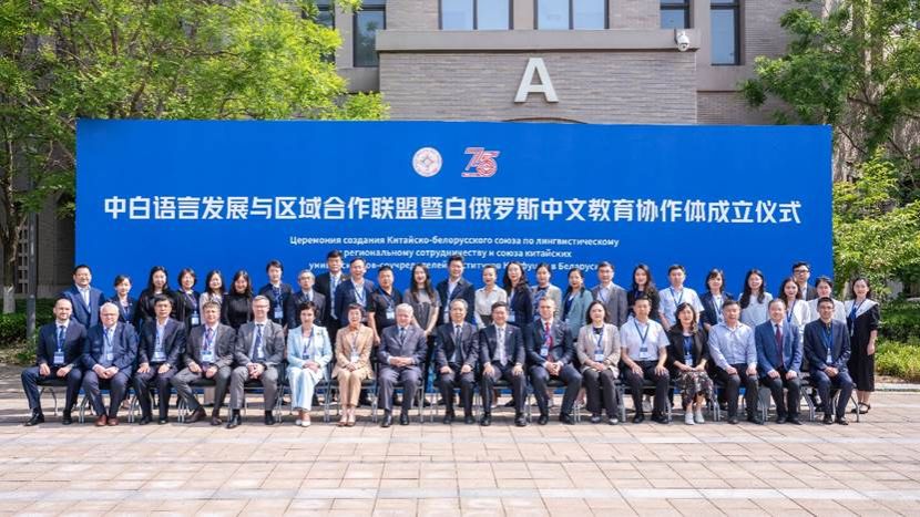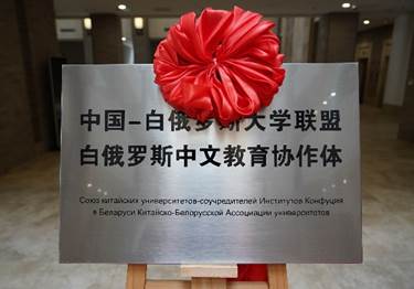 随后,与会领导共同为“中白语言发展与区域合作集群子联盟”“白俄罗斯中文教育协作体”揭牌。