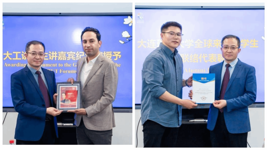 论坛上,还颁发了大工校友讲坛纪念牌,并为预毕业生代表授予了大工全球来华留学生校友联络代表称号。