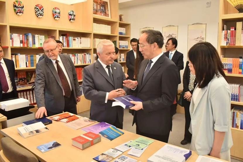 此前,在托济克和刘素玲的陪同下,李乐成一行还参观了孔子学院远程教学录播教室、多媒体教室、图书馆、礼堂等地,观看了中白教育合作成果展和白俄罗斯共和国硬笔书法大赛获奖作品。在图书馆,李乐成与白俄罗斯本土中小学中文教师培训班的学员展开亲切交流,鼓励大家好好学习,为白俄罗斯的中文教学和中白友谊作出更大贡献。