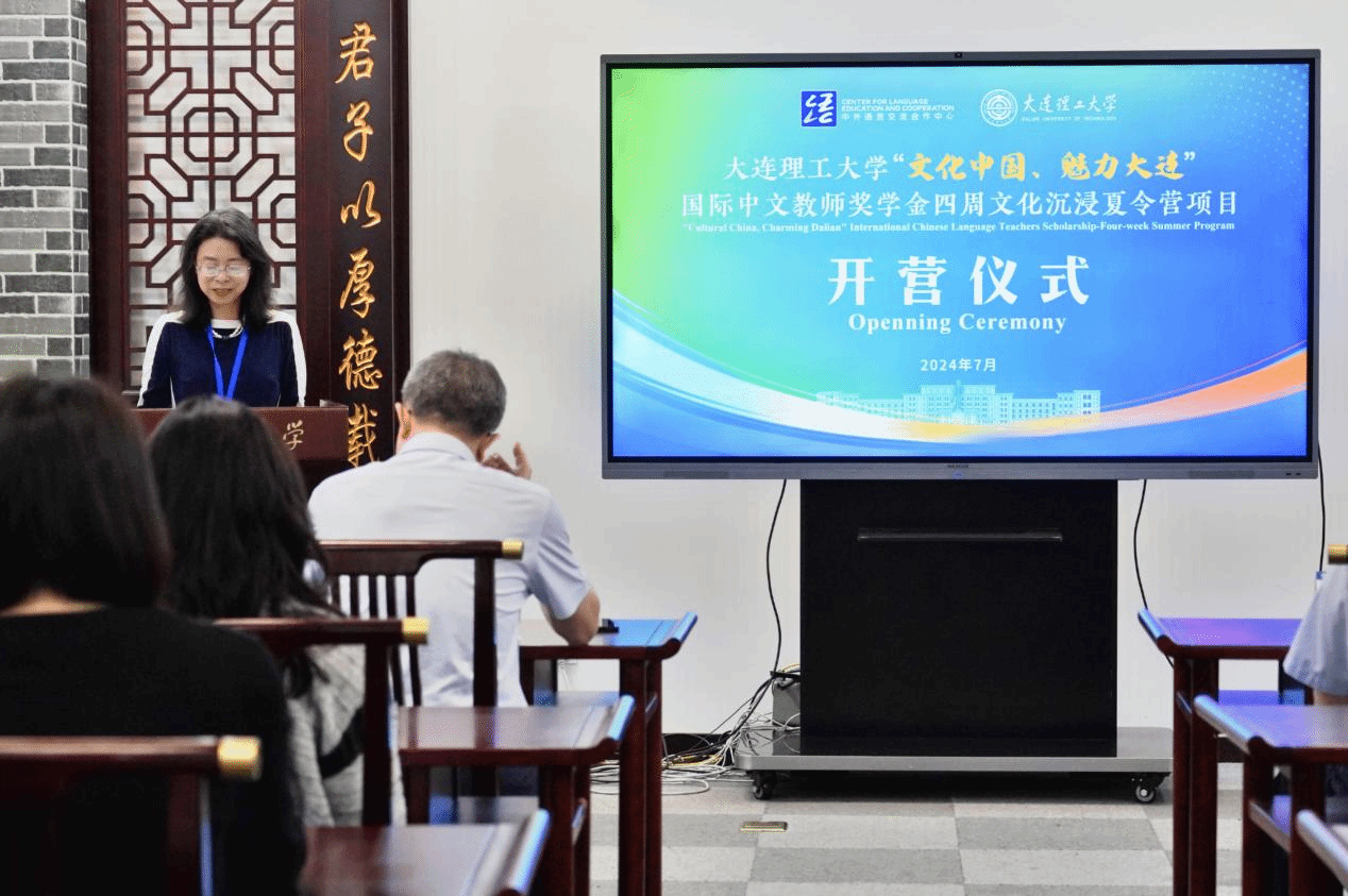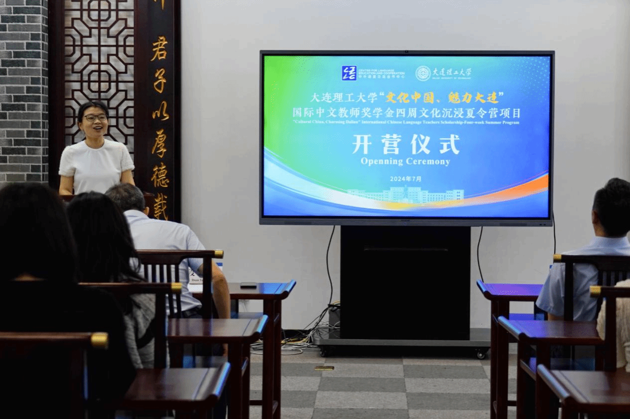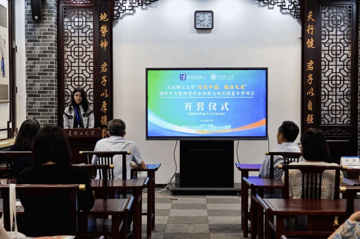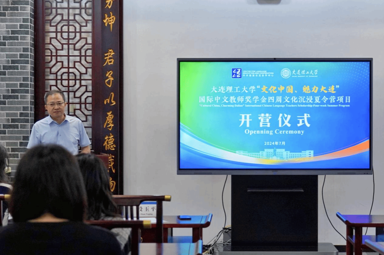 7月5日上午8:30分,2024年度“文化中国,魅力大连”国际中文教师奖学金四周文化沉浸式夏令营项目的开营仪式在国际教育学院智慧教室顺利举行。本次夏令营由教育部中外语言交流合作中心主办,大连理工大学承办。开营仪式由院长助理杜芳主持。国际教育学院院长段玉平、副院长张继东、教师团队、中国志愿者以及来自越南、韩国、日本、俄罗斯、白俄罗斯的营员参加了本次开营。