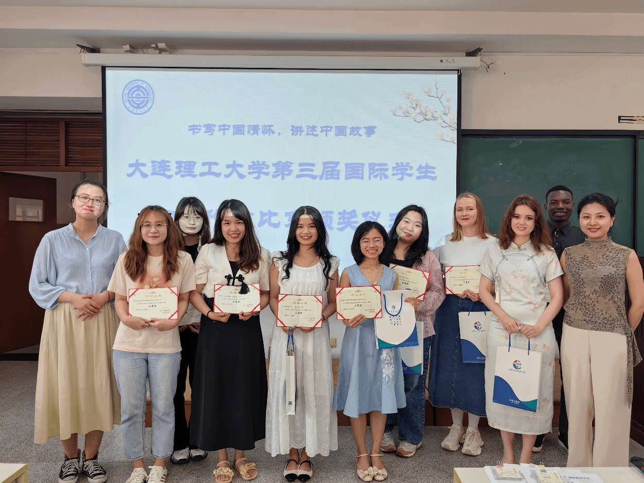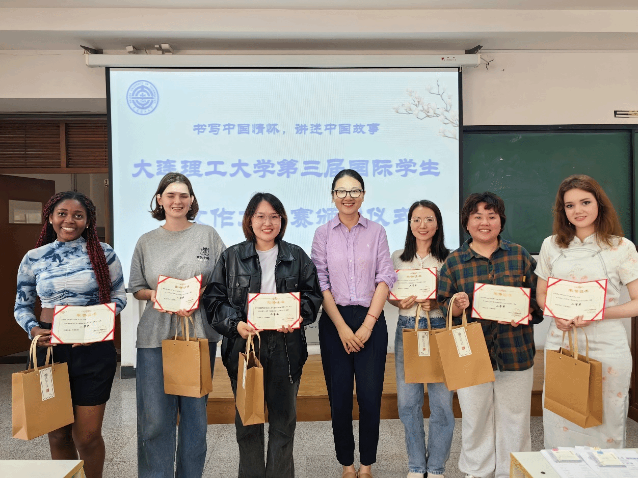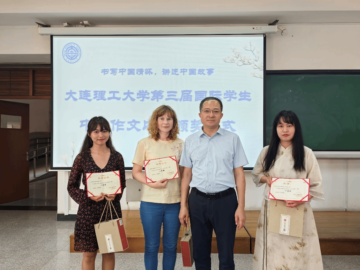 7月5日,大连理工大学第三届国际学生中文作文比赛颁奖仪式在研教楼104教室举行。国际教育学院院长段玉平教授、院长助理郭涵宁老师及汉语培训中心的相关老师为获奖选手颁发了获奖证书和纪念品。