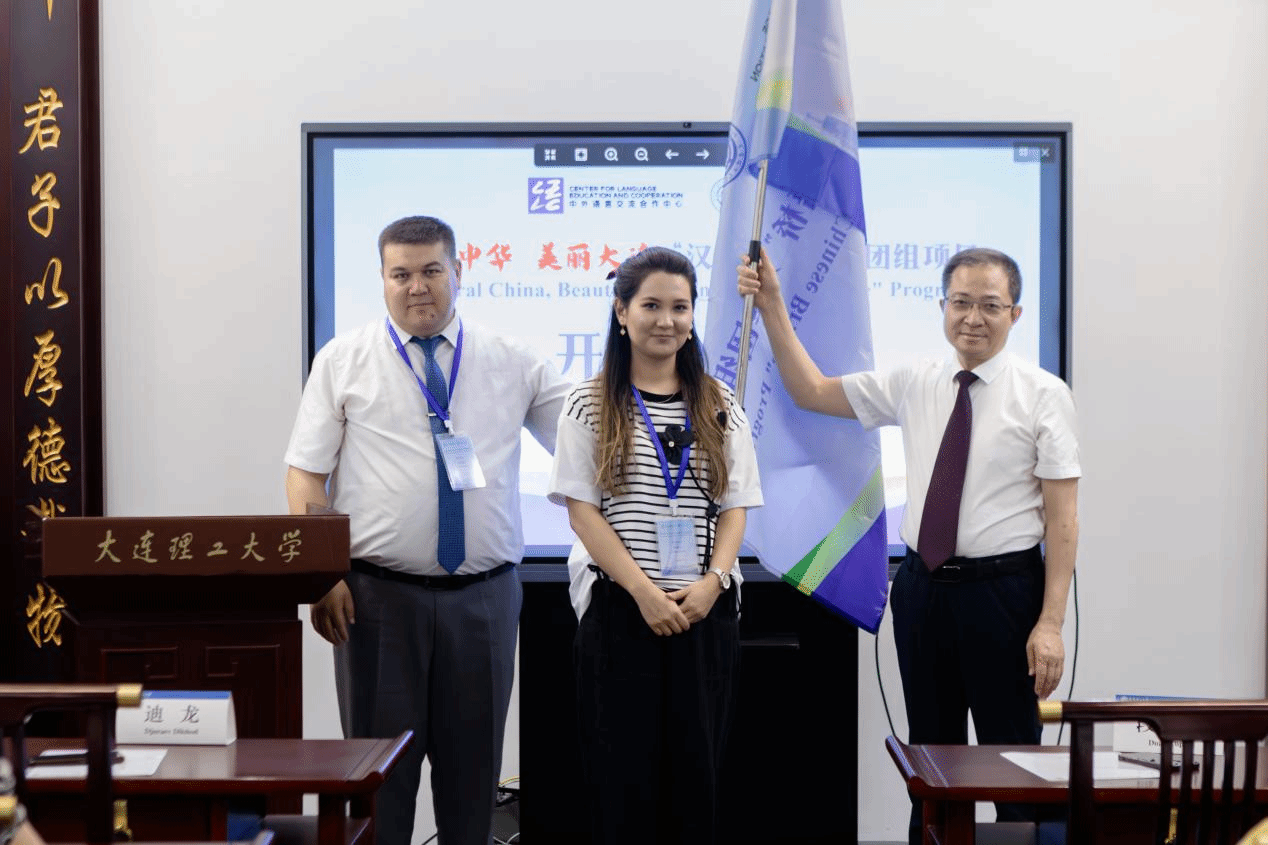 7月12日上午8点,“文化中华,美丽大连”“汉语桥”来华团组交流项目开营仪式在大连理工大学国际教育学院D109顺利举行。院长助理杜芳主持此次项目开营仪式。乌兹别克斯坦国立世界语言大学东方语言文学系系主任迪龙、大连理工大学国际教育学院院长段玉平、副院长张继东、教师团队以及来自乌兹别克斯坦的营员参与了本次开营仪式。