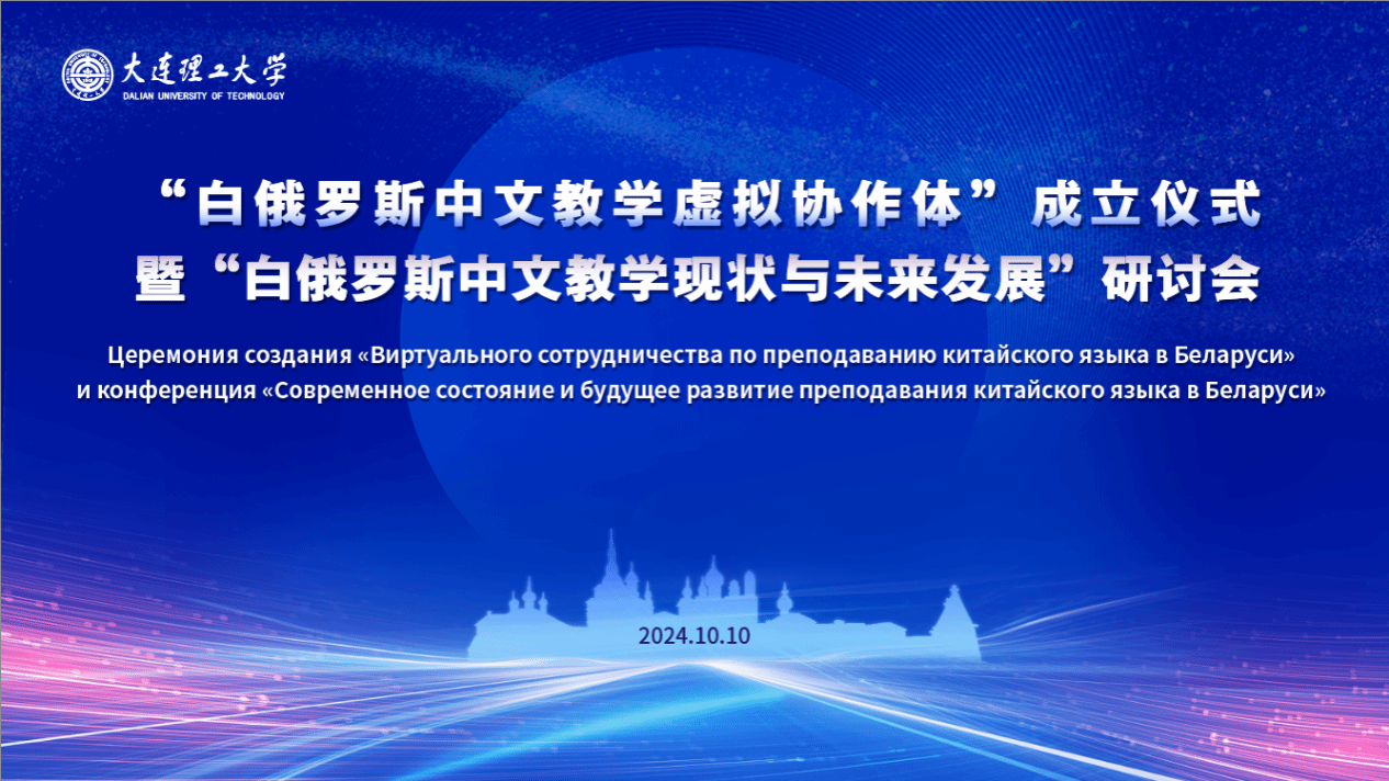 2024年10月10日,由中外语言交流合作中心和辽宁省教育厅主办,大连理工大学承办的白俄罗斯中文教学虚拟协作体成立仪式暨“白俄罗斯中文教学现状与未来发展”研讨会以线上方式顺利召开。辽宁省教育厅国际交流合作处副处长庞姝婷、大连理工大学国际教育学院院长段玉平出席并致辞。来自白俄罗斯孔子学院及其中方合作高校、白俄罗斯中文教育机构的80余位专家学者及高校师生参加了本次大会,会议由大连理工大学国际教育学院副院长张继东主持。