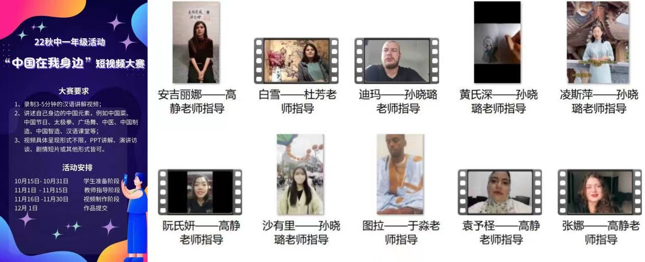 为进一步加强汉语应用,拓展中文文化知识,满足学员深入了解中国、探索中华文化内涵的需求,设置了丰富有趣的中国音乐课程,涉及中国电影配音、“中国在我身边”短视频大赛第二课堂活动。通过导师对学员的个性化指导,有效提升了跨文化交际能力和对中华文化的深入了解。