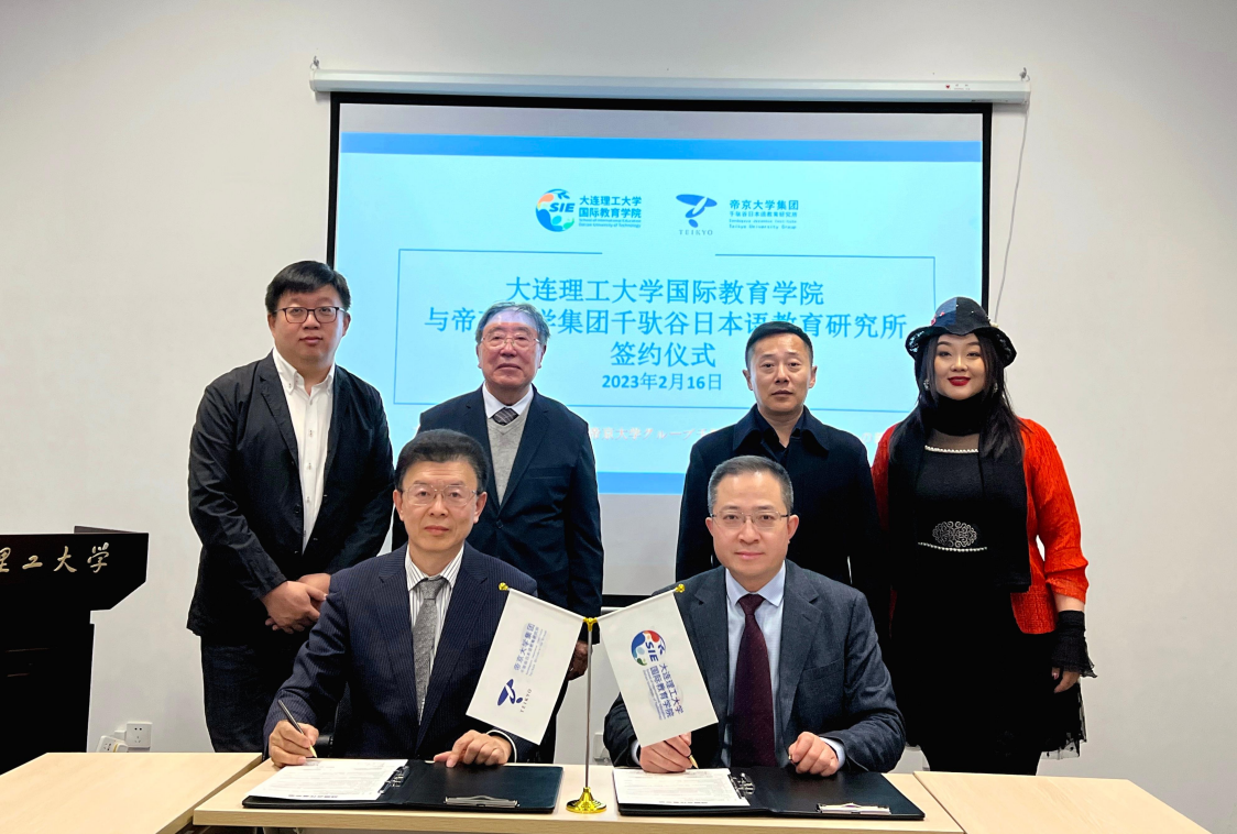 2023 年 2 月 16 日下午,大连理工大学国际教育学院与帝京大学教育集团千驮谷日本语教育在大连理工大学国际教育学院举行了战略合作签约仪式。帝京大学集团千驮谷日本语教育中国事务所长申旭锋、帝京平成大学特聘教授陈岩、大连理工大学国际教育学院院长段玉平等出席了本次战略合作签约仪式。