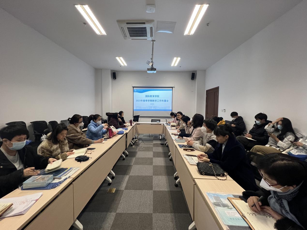 2月24日下午,国际教育学院在D107会议室召开2023年春季学期教学工作布置会。会议由院长助理郭涵宁主持,国际教育学院教学督导老师、全体教师以及教务员老师参会。