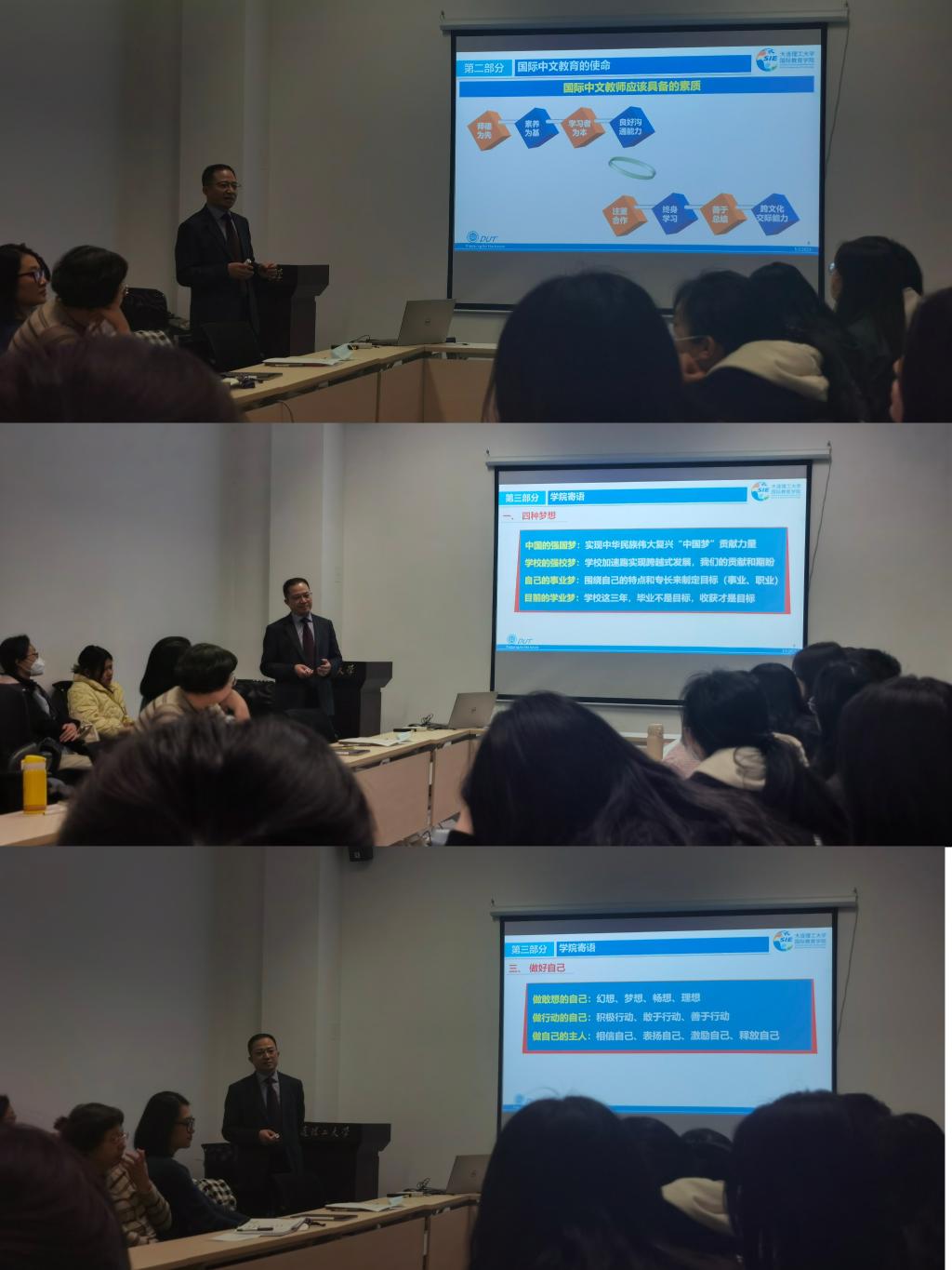 随后,辅导员田丝雨全面回顾了汉硕同学们过去一年的表现;思政班主任徐丹和郭涵宁围绕学业规划、校园生活向同学们提出了建议,并希望全体学生以全新的精神面貌和更加饱满的热情,迎接新的挑战,努力让更多人听到大连理工大学汉硕学生的声音。
