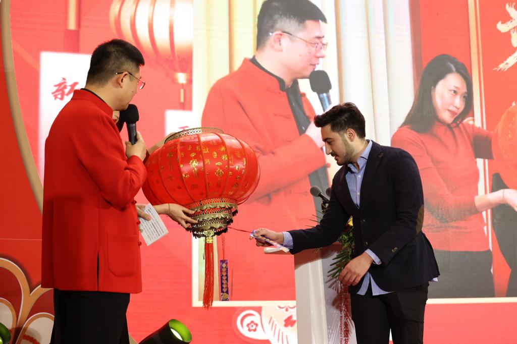 “火红灯笼高高挂,多彩谜面闹元宵”。招待会上还举办了猜灯谜这项传统元宵节趣味活动,将我国各类文化知识融入到字谜中,增加外国友人对传统文化的乐趣。 “猜灯谜活动太有乐趣了,这让我感受到了中国文字的奥妙,中国文化的深厚底蕴。”飞龙高兴地说道。