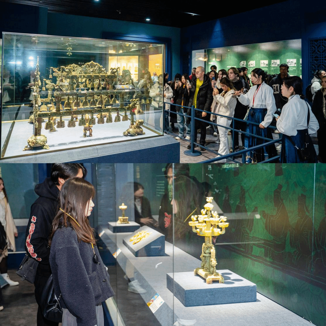 活动共分三个部分:博物展陈区参观、孔子学堂华夏礼仪学习、非遗技艺体验。在博物展陈区,国际学生们不仅欣赏了精美的青铜器、玉器、金银器、陶瓷器等中国古代文明成果,聆听了藏品背后的故事,也通过一件件精美的藏品,加深了对中国历史文化,尤其是中西文化交流融合历史的认识与了解。
