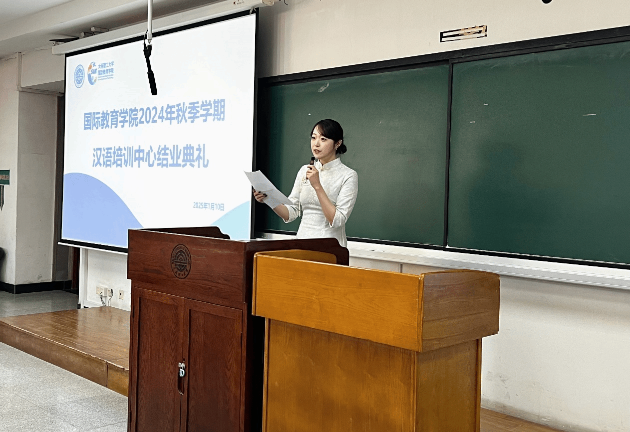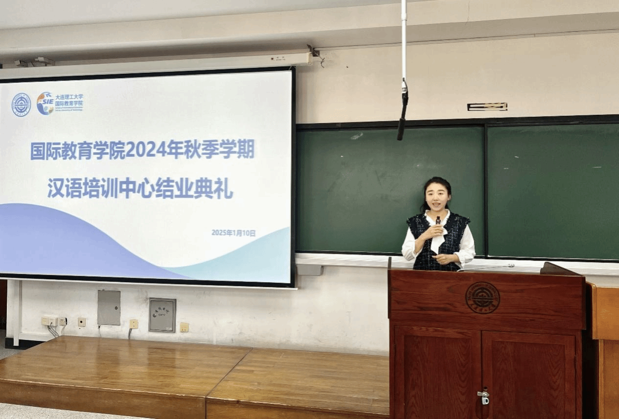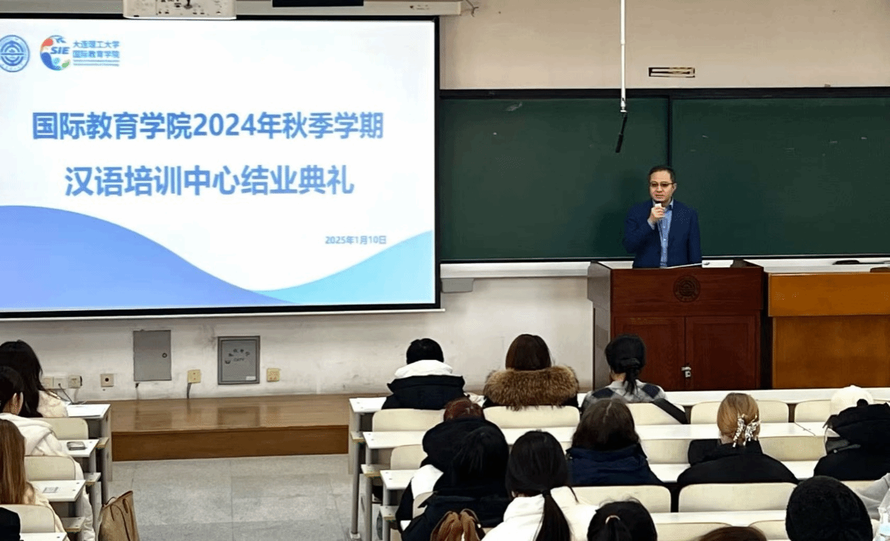 2025年1月10日下午,大连理工大学国际教育学院2024年秋季学期汉语培训中心结业典礼在研教楼104教室隆重举行。本次典礼由汉语培训中心主任宋鹏老师主持,国际教育学院院长段玉平教授、院长助理郭涵宁副教授、汉语培训中心任课老师及2024年秋季学期全体进修生参加了此次典礼。